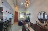 A sala possui pé direito de 4 metros, piso em porcelanato,painel TV, teto com detalhe em gesso, spots, preparação para ar condicionado, lavabo.
